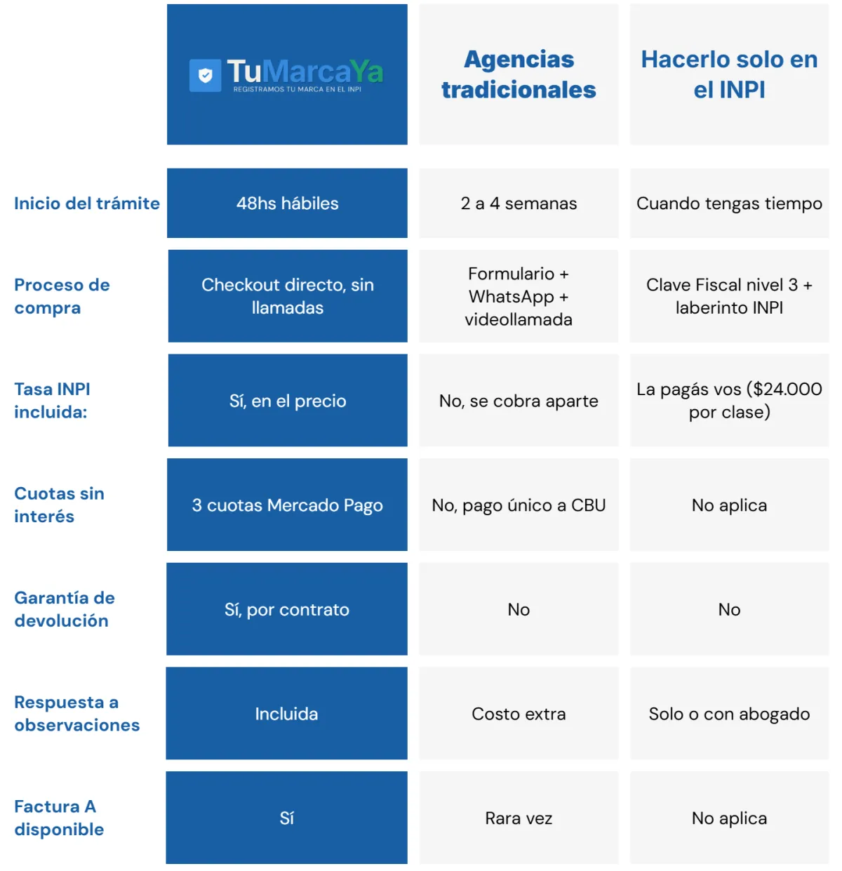 Puede ser. Pero fijate qué incluye ese precio: ¿la tasa del INPI está adentro o se cobra aparte? ¿Incluye seguimiento durante los 12–24 meses del proceso? ¿Responden observaciones sin costo extra? ¿Tienen garantía de devolución? ¿Ofrecen cuotas sin interés?